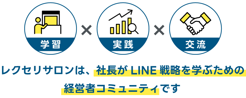レクセリサロンでは、飲食・美容・整体・ECなど、全16業種×500件超の成功事例をもとに、あなたのビジネスに最適なLINE戦略をお教えし、実践のサポートやフィードバック、社長同士の交流のお手伝いをします。